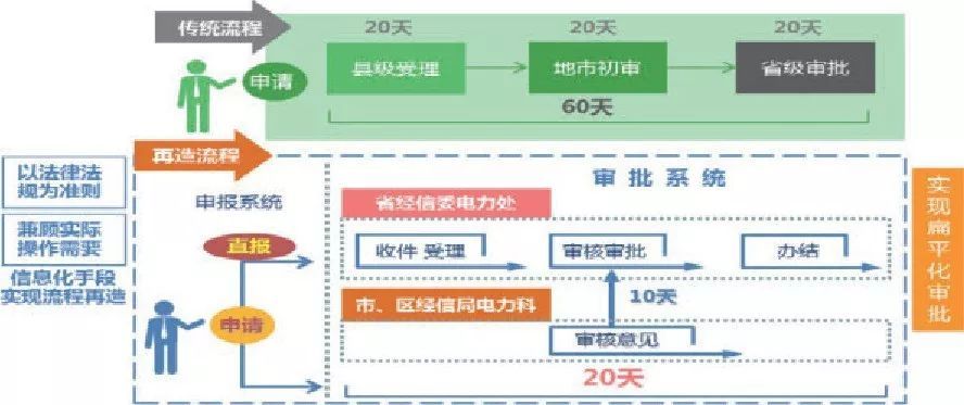 通過流程再造, 縣、市、省分別受理、審核變?yōu)槭≈苯邮芾?。通過一表式填報(bào), 附件從5份精簡為3份, 取消請示文件。辦理時(shí)限由原來的60天變?yōu)?0天。實(shí)現(xiàn)了全流程網(wǎng)上辦, 數(shù)字證書+郵政服務(wù)實(shí)現(xiàn)0跑動(dòng)。