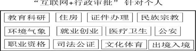 凡是與企業(yè)和個(gè)人相關(guān)的審批事項(xiàng)都要推行網(wǎng)上受理、網(wǎng)上辦理、網(wǎng)上反饋?!盎ヂ?lián)網(wǎng)+行政審批”平臺要把一批企業(yè)和老百姓經(jīng)常要辦的一些事項(xiàng)優(yōu)先嵌入網(wǎng)上辦事大廳, 增加辦事人對網(wǎng)上行政審批的認(rèn)知度和認(rèn)可度, 擴(kuò)大宣傳效果。針對個(gè)人用戶, 審批內(nèi)容涉及到以下幾個(gè)重點(diǎn)領(lǐng)域, 如圖3所示。