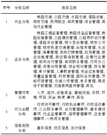 表3 交通運輸政務(wù)信息資源分類類目