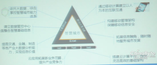 該方案設(shè)計(jì)以智慧城市建設(shè)為核心,將需求分解為云計(jì)算、移動(dòng)計(jì)算和大數(shù)據(jù)應(yīng)用三個(gè)部分,并通過構(gòu)建卓越研究基地(CoE)來滿足需求。其中,大數(shù)據(jù)CoE的設(shè)計(jì)是整合智慧基礎(chǔ)設(shè)施的各種信息,用于提高金融、交通、制造等產(chǎn)業(yè)大數(shù)據(jù)的分析能力,以此為依托提供城市的智能化管理水平。