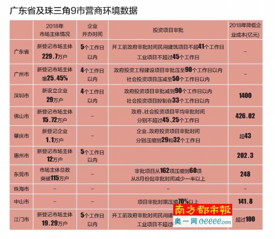 數(shù)據(jù)顯示,廣東省的企業(yè)開辦時間壓縮至5個工作日以內(nèi),新登記各類市場主體229.7萬戶、總量達1146萬戶;廣州、深圳的企業(yè)開辦時間均壓縮至4個工作日以內(nèi),領(lǐng)先全省水平。其中,廣州市去年開辟工商登記快捷通道,辦理工商執(zhí)照最快一天、立等可取。