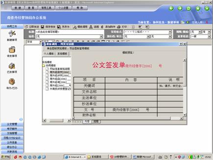 實現(xiàn)辦公信息自動化是我們設計和實施電子政務應用的主要任務。當前外經(jīng)貿(mào)系統(tǒng)工作具體表現(xiàn)在外經(jīng)貿(mào)活動多、項目多、出差多、流動性大,市縣區(qū)需要聯(lián)系的工作內(nèi)容多、人員少,大多數(shù)同志工作特別繁忙,長期處于超負荷運轉(zhuǎn)狀態(tài),由此造成了各類辦公信息傳遞交流不及時、信息共享嚴重不足等問題,影響了整體工作質(zhì)量提高。為此我局有針對性地對辦公自動化軟件進行篩選,通過比較,于04年10月份最終選擇了用友致遠A6協(xié)同管理軟件,該軟件具有以下特點: