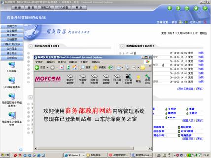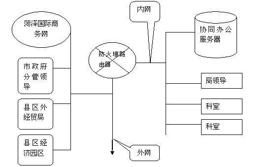 菏澤市外經(jīng)貿(mào)局電子政務工作由于受到各方面條件制約起步較晚。自2004年以來,在省、市領導的高度關(guān)懷和大力支持下,我局開始籌建菏澤外經(jīng)貿(mào)電子政務系統(tǒng)。在建設過程中,我們堅持整體規(guī)劃、分步實施的原則,以高效、節(jié)約、安全、易用為目標,緊密結(jié)合工作實際需要,多方考察論證,充分利用現(xiàn)有的科學技術(shù)手段和條件,克服資金、技術(shù)方面的困難,在歷時2年多的時間內(nèi),分別通過3期工程,采用有效技術(shù)手段將內(nèi)外網(wǎng)絡的有機整合,建立起由縣區(qū)市外經(jīng)貿(mào)局、各經(jīng)濟園區(qū)、各外經(jīng)貿(mào)企業(yè)到市政府分管領導自下而上的大外經(jīng)貿(mào)電子政務網(wǎng)絡,初步建成了以“菏澤外經(jīng)貿(mào)協(xié)同辦公系統(tǒng)”為電子政務支持平臺、以“菏澤國際商務網(wǎng)”、“中國菏澤商務之窗”為門戶的電子政務系統(tǒng),形成了信息互通共享、辦公高效協(xié)同的全新辦公自動化運行機制。
