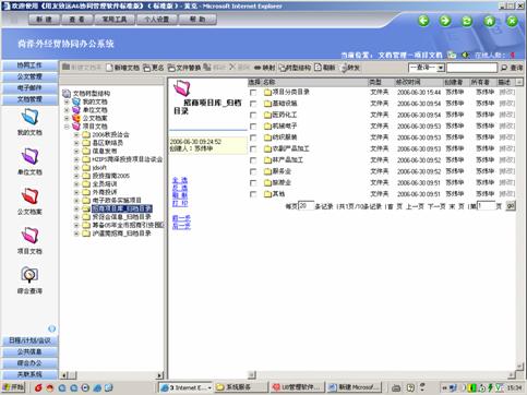 為了配合我市招商引資活動,如每年兩次的投資貿(mào)易洽談會,將我市最新的招商項目以多種文字上網(wǎng)發(fā)布,同時及時發(fā)布我市的有關(guān)招商引資的各項活動動態(tài)等。如朝鮮農(nóng)科院在中國設有辦事處,一直希望通過盡可能多的機會和中國在農(nóng)業(yè)方面進行交流與合作。在網(wǎng)上得知2006中國(菏澤)農(nóng)資交易會舉辦的消息后,朝鮮農(nóng)科院組團到參加農(nóng)資會,對所展出種子、農(nóng)藥、農(nóng)機等很感興趣,與部分企業(yè)達成了采購意向,并希望通過這樣的平臺采購更多有價值的農(nóng)資產(chǎn)品。我們在網(wǎng)上對朝鮮代表團的參會進行了跟蹤報道,同時也激發(fā)了各參展單位的積極性,紛紛表示下界農(nóng)資會一定再參展。另一方面,充分利用協(xié)同辦公中項目管理的功能,集中對各項外經(jīng)貿(mào)活動的資料文檔集中管理,項目信息共享,為類似的項目活動提供資料的積累和借鑒,給外經(jīng)貿(mào)工作帶來了很大的便利。