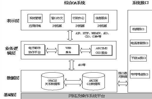 本系統(tǒng)采用Microsoft Exchange平臺作為協(xié)作應(yīng)用服務(wù)器,ORACLE作為關(guān)系數(shù)據(jù)庫平臺?;赪eb技術(shù)開發(fā),客戶端不用安裝任何軟件,只需通過瀏覽器即可使用本系統(tǒng)。