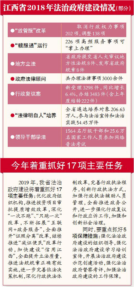 8日,記者從江西省政府有關(guān)部門獲悉,江西省政府日前發(fā)布《江西省2018年法治政府建設(shè)情況》。