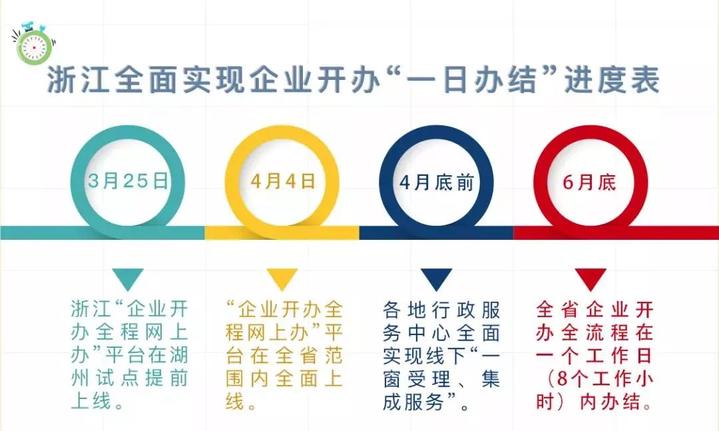浙江省委改革辦(省跑改辦)、省市場監(jiān)管局、省公安廳、省人力社保廳、浙江省稅務(wù)局、省大數(shù)據(jù)局、人行杭州中心支行七部門近日出臺《浙江省優(yōu)化營商環(huán)境企業(yè)開辦全流程“一件事”一日辦結(jié)便利化行動方案》(下稱《行動方案》),提出至2019年6月底,全省企業(yè)開辦全流程涉及的企業(yè)設(shè)立登記、公章刻制、銀行開戶、發(fā)票申領(lǐng)等四個聯(lián)辦事項組成的“一件事”將在一個工作日(8個工作小時)內(nèi)辦結(jié)。