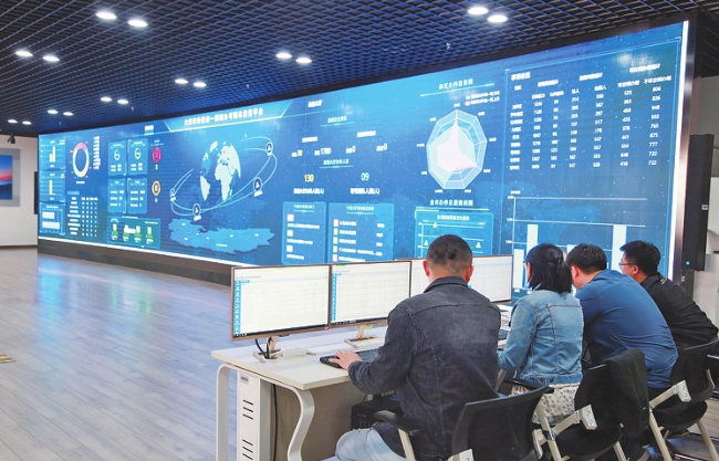 大慶市行政服務(wù)中心大廳管理人員監(jiān)控全市政務(wù)服務(wù)協(xié)同情況。