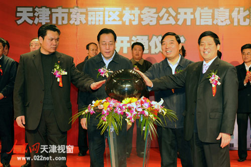 東麗區(qū)村務(wù)公開信息化網(wǎng)站開通儀式, 2月21日在區(qū)廣電局演播大廳舉行。從此以后,村民們只要在各自村里設(shè)置的信息觸摸屏用手指輕輕一點(diǎn),就可以知道自己想要了解的村務(wù)信息。這樣全區(qū)的村務(wù)公開和民主管理工作就達(dá)到了便于監(jiān)督、便于查詢,公開透明,管理規(guī)范。有力地促進(jìn)了全區(qū)民主政治建設(shè)的進(jìn)程。