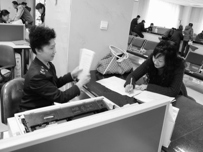 辦理工商執(zhí)照的周女士(右)說,現(xiàn)在跑著蓋審批公章的不再是申請人,而是辦理機關的工作人員。
