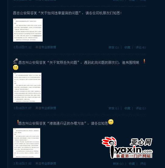 我的手機(jī)在亞中被人偷了、異地投靠怎么落實、關(guān)于外地戶口申領(lǐng)機(jī)動車駕駛證問題、交警處罰不公平-----微博開通了,咨詢問題的來了,批評的聲音也來了。