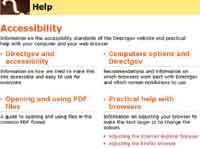 尤其在便利技術(shù)子主題中,網(wǎng)站設(shè)置了3個(gè)服務(wù)項(xiàng)目,特別為殘疾人士提供了極富人性化的服務(wù)幫助:更簡(jiǎn)便的使用電腦、便利的技術(shù)產(chǎn)品、英國(guó)在線(xiàn)中心。這些服務(wù)項(xiàng)目主要幫助殘疾人士選擇合適的硬件器材、軟件平臺(tái)。其中英國(guó)在線(xiàn)中心,不僅提供了大量的便利性技術(shù)產(chǎn)品,如為盲人提供上網(wǎng)的語(yǔ)音輔助器材,為身體殘疾人士提供特殊的鼠標(biāo)鍵盤(pán),同時(shí)通過(guò)最近的在線(xiàn)中心,用戶(hù)還可以獲得專(zhuān)門(mén)的服務(wù)人員的個(gè)人輔導(dǎo),順利地從政府網(wǎng)站獲取資訊和服務(wù)。