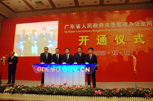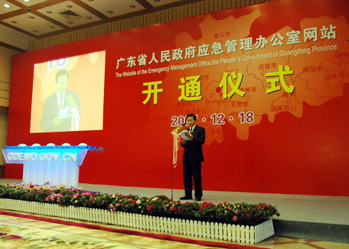 國內首個應急管理專門網(wǎng)站——廣東省人民政府應急管理辦公室網(wǎng)站今日(18日)正式開通。省應急委主任、省委副書記、省長黃華華,省應急委副主任、省委副書記、省政法委書記劉玉浦,省應急委副主任、省委常委、省公安廳廳長梁偉發(fā),常務副省長鐘陽勝,省應急委副主任、副省長李容根,副省長佟星出席網(wǎng)站開通儀式。黃華華省長在開通儀式上作了重要講話。省政府秘書長、辦公廳主任徐尚武介紹了省政府應急辦網(wǎng)站建設情況。