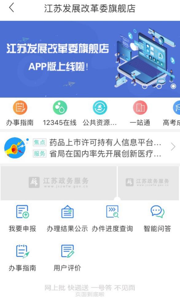 應(yīng)用商店下載江蘇政務(wù)服務(wù)APP,在旗艦店欄目查找江蘇發(fā)展改革委旗艦店,具體圖示如下: