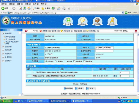 在各項(xiàng)基本具備實(shí)現(xiàn)在線辦事的條件后,2005年,鄭州市開(kāi)始規(guī)劃建設(shè)“鄭州市網(wǎng)上行政審批服務(wù)中心”,實(shí)現(xiàn)由物理形式的各部門(mén)分散的“辦事大廳”模式向虛擬的“一站式”的電子化辦公轉(zhuǎn)變。
