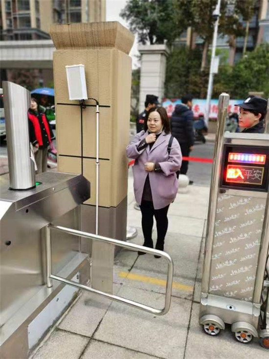 來(lái)幼兒園接孩子的家長(zhǎng)正在門口“刷臉” 攝影 王禮林