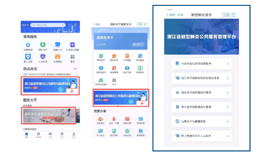 路徑2:打開浙里辦APP國民醫(yī)療健康專區(qū)→浙江省新型肺炎公共服務(wù)與管理平臺(tái)