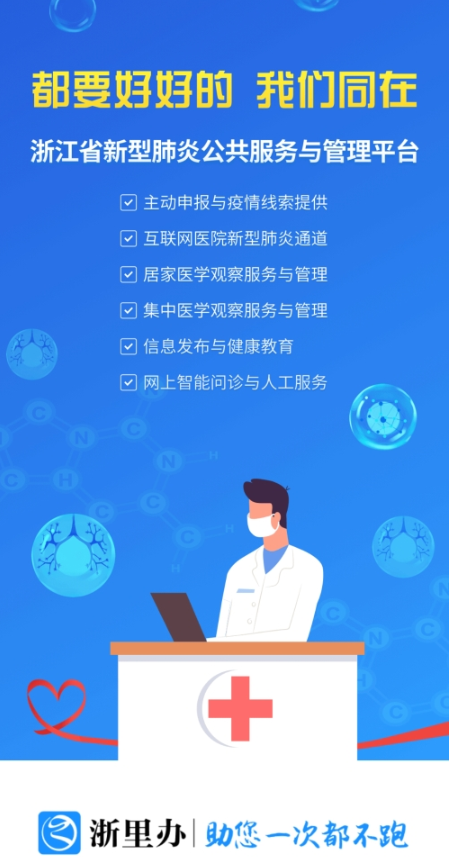 另外,你還可以在浙江省新型肺炎公共服務(wù)與管理平臺(tái)了解到居家醫(yī)學(xué)觀察服務(wù)與管理、集中醫(yī)學(xué)觀察服務(wù)與管理、信息發(fā)布與健康教育等相關(guān)服務(wù),歡迎打開浙里辦使用浙江省新型肺炎公共服務(wù)與管理平臺(tái)。