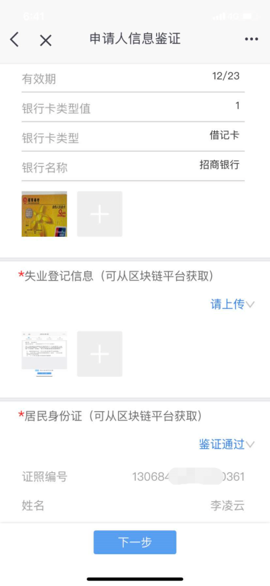 “就業(yè)失業(yè)登記證辦理”和“按月申領(lǐng)失業(yè)保險金”通過辦理結(jié)果數(shù)據(jù)上鏈,可以主動推送信息給辦事人辦理“失業(yè)保險金申領(lǐng)”,辦事人在海淀區(qū)一網(wǎng)通辦平臺各端“申領(lǐng)失業(yè)保險金”,并通過“人臉識別”校驗身份信息后,提交申領(lǐng)銀行賬號信息,就能完成申報。