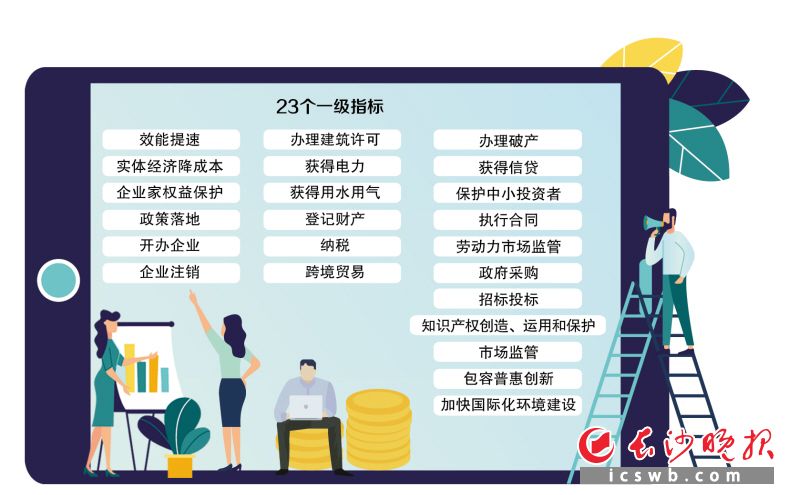 今年,長(zhǎng)沙重點(diǎn)針對(duì)企業(yè)開辦、企業(yè)注銷、獲得建筑許可等23個(gè)重要方面優(yōu)化營(yíng)商環(huán)境。其中,23個(gè)一級(jí)指標(biāo)分別為效能提速,實(shí)體經(jīng)濟(jì)降成本,企業(yè)家權(quán)益保護(hù),政策落地,開辦企業(yè),企業(yè)注銷,辦理建筑許可,獲得電力,獲得用水用氣,登記財(cái)產(chǎn),納稅,跨境貿(mào)易,辦理破產(chǎn),獲得信貸,保護(hù)中小投資者,執(zhí)行合同,勞動(dòng)力市場(chǎng)監(jiān)管,政府采購(gòu),招標(biāo)投標(biāo),知識(shí)產(chǎn)權(quán)創(chuàng)造、運(yùn)用和保護(hù),市場(chǎng)監(jiān)管,包容普惠創(chuàng)新,加快國(guó)際化環(huán)境建設(shè)。