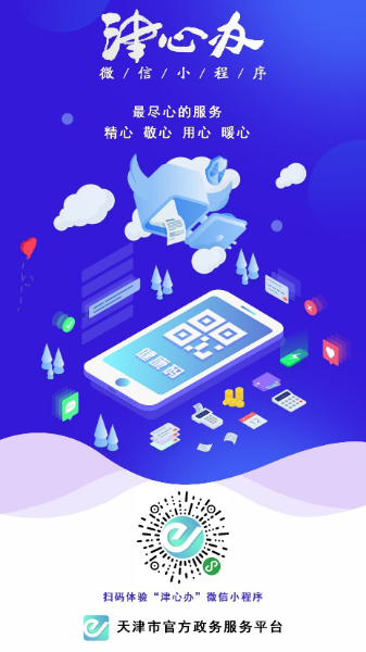 微信掃描此小程序碼進入“津心辦”小程序