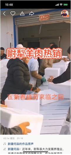 何淼通過快手平臺給尉犁羊肉帶貨。