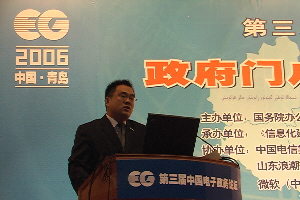 2006年9月16日—17日,由國務院辦公廳秘書局、國務院辦公廳電子政務中心主辦,青島市委市政府計算機中心、《信息化建設(shè)》雜志社等承辦的第三屆中國電子政務論壇在青島市舉行。受論壇邀請,參與青島市網(wǎng)上審批系統(tǒng)建設(shè)的浪潮集團,攜其浪潮政務審批平臺(ECGAP)及政府行政審批信息化解決方案參加了這次論壇。在標有“浪潮”企業(yè)標識的主會場背景板前,浪潮集團電子政務領(lǐng)域的技術(shù)專家張峰發(fā)表了題為《精鑄服務平臺貫通互聯(lián)政務》的演講,對浪潮先進的政務信息化解決方案做了精彩論述,受到了與會300多名省、市級政府信息化建設(shè)主管領(lǐng)導的青睞與關(guān)注。