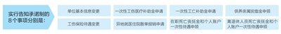 實行告知承諾制的8個事項分別是:單位基本信息變更;一次性工傷醫(yī)療補助金申請;一次性工亡補助金申請;供養(yǎng)親屬撫恤金申領;工傷保險待遇變更;異地就醫(yī)住院散單報銷申請;在職死亡喪撫金和個人賬戶一次性待遇申領;離退休人員死亡喪撫金和個人賬戶一次性待遇申領。這些事項涉及的證明材料共有14種。其中,在職參保人和離退休人員死亡喪撫金及個人賬戶一次性待遇申領事項涉及的死亡證明,已于今年4月1日實施告知承諾制,這次對承諾書文本進行了規(guī)范性調整。