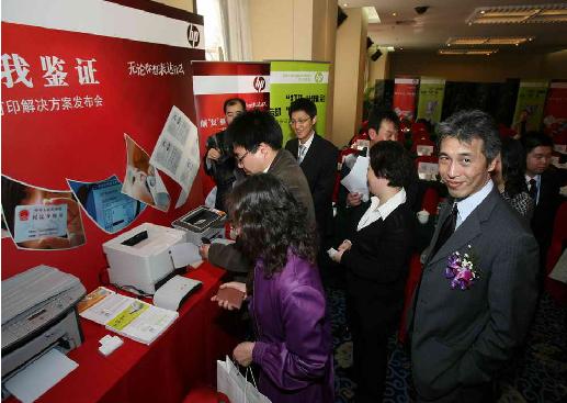 (2008年2月29日,北京訊),全球打印及成像領(lǐng)導(dǎo)廠商——惠普攜手國(guó)中國(guó)最專業(yè)的二代身份證信息解決方案提供商——北京思創(chuàng)銀聯(lián)科技有限公司一同在北京舉行了主題為:“顛復(fù)繼打 真我鑒證”的新聞發(fā)布會(huì),向業(yè)界隆重推出專為中國(guó)市場(chǎng)量身定制的第二代居民身份證識(shí)別打印解決方案。同時(shí),作為國(guó)家居民身份證技術(shù)標(biāo)準(zhǔn)制定、身份證核驗(yàn)設(shè)備研制單位的公安部第一研究所相關(guān)領(lǐng)導(dǎo)也應(yīng)邀出席。這一解決方案創(chuàng)造性地將第二代身份證的驗(yàn)證和留存合二為一,徹底顛覆了傳統(tǒng)的身份證復(fù)印留存方式,將中國(guó)二代居民身份證的先進(jìn)性和科技性得以全面實(shí)現(xiàn),進(jìn)而幫助政府管理部門和行業(yè)客戶輕松實(shí)現(xiàn)安全、真實(shí)、便捷、節(jié)能、環(huán)保的身份證驗(yàn)證和留存,全面提升中國(guó)社會(huì)管理領(lǐng)域的信息化水平,開(kāi)創(chuàng)中國(guó)社會(huì)數(shù)字化存留歷史的嶄新局面。