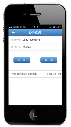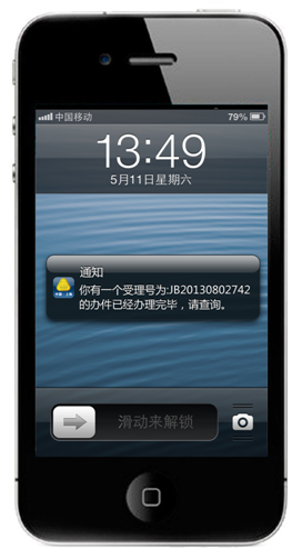 移動終端系統(tǒng)可以綁定用戶手機(jī)的設(shè)備ID,并在手機(jī)上自動記錄提交的辦件編號,供將來進(jìn)行辦件查詢。這將比電腦更加方便。