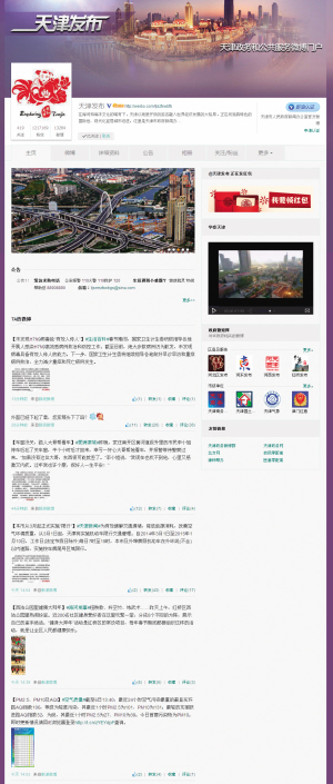 截至記者發(fā)稿前,“天津發(fā)布”官方微博在新浪平臺已擁有粉絲121萬余人,在騰訊平臺擁有聽眾76萬余人,發(fā)布微博13000余條。去年,由市政府新聞辦組織三批政務(wù)微博在“天津政務(wù)微博發(fā)布廳”完成集結(jié),60多家單位在新浪、騰訊平臺開通了政務(wù)微博,本市所有區(qū)縣政府、與民生相關(guān)的市級委辦局以及市有關(guān)公共服務(wù)部門均擁有了微博。武漢大學(xué)互聯(lián)網(wǎng)科學(xué)研究中心發(fā)布的《天津市2013年政務(wù)微博年度報告》中提到“天津市在運(yùn)用政務(wù)微博做好政務(wù)公開、民生服務(wù)方面走到了全國的前列”。