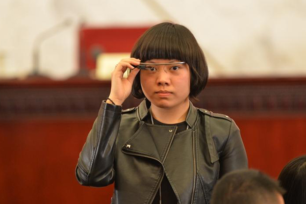 人民網(wǎng)記者戴著Google眼鏡出現(xiàn)在大會現(xiàn)場 圖片來源網(wǎng)絡(luò)