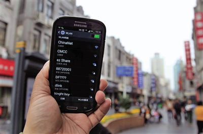 在五馬街,記者從東走到西,分別在大眾影院門口和溫州古地圖建筑前,開啟手機無線網(wǎng)絡(luò)后,搜索不到“iwenzhou”,只顯示“CMCC”和“CHINANET”。周邊商店店員也證實,從未連上過“iwenzhou”,都是在用自家的無線網(wǎng)絡(luò)。