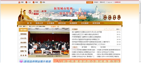 新鄭政府門(mén)戶(hù)網(wǎng)站成立于2005年,網(wǎng)站職能包括新聞信息發(fā)布、信息公開(kāi)、政民互動(dòng)、在線辦事、市長(zhǎng)信箱辦理、在線訪談等,網(wǎng)站還設(shè)有一級(jí)欄目56個(gè),二級(jí)欄目436個(gè),涉及辦事服務(wù)1561項(xiàng),辦事指南2400條,政民互動(dòng)專(zhuān)欄42個(gè),主站日更新信息600多條,全站累計(jì)發(fā)布信息60多萬(wàn)條。近年來(lái),新鄭市政府網(wǎng)站始終致力于打造“透明、服務(wù)、民主”的政府形象,開(kāi)拓創(chuàng)新、銳意進(jìn)取,不斷改版升級(jí)、豐富內(nèi)容、增強(qiáng)功能、提升形象,使網(wǎng)站各項(xiàng)建設(shè)更加人性化、規(guī)范化、科學(xué)化,該網(wǎng)站先后獲得“中國(guó)政府網(wǎng)站優(yōu)秀獎(jiǎng)”、政府網(wǎng)站領(lǐng)先獎(jiǎng)前十名等榮譽(yù)稱(chēng)號(hào)。