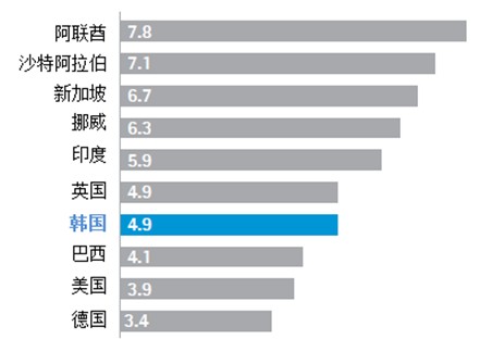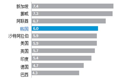 民眾希望政府能更高效。這一結(jié)果也反映了一個(gè)事實(shí),即在WEF的全球競(jìng)爭(zhēng)力指數(shù)2012-2013排名中,韓國(guó)是本次調(diào)查的十國(guó)中政府開支最浪費(fèi)的國(guó)家。