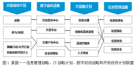 美國政府已將數(shù)字戰(zhàn)略和信息管理、IT以及開放政府計劃有機結合起來(圖1)。