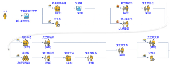 ?。?)空節(jié)點和手動分支的使用使局機關(guān)與下屬單位、機關(guān)各部門間公文交換及對外部單位發(fā)文操作更加靈活簡單