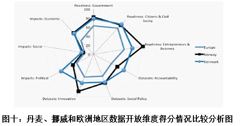 在執(zhí)行力方面,兩國在通過數(shù)據(jù)開放改善社會決策方面得分較為接近,但在利用數(shù)據(jù)開放提升政府透明度和問責意識方面丹麥明顯好于挪威,而在利用數(shù)據(jù)開放進行創(chuàng)新方面挪威則優(yōu)于丹麥。在影響力方面,公共數(shù)據(jù)開放給兩國在經(jīng)濟和社會所帶來的影響差距不明顯,但在數(shù)據(jù)開放所帶來的政治影響力方面丹麥明顯高于挪威。2010年丹麥企業(yè)建設(shè)局在對政府2002年推出“免費訪問數(shù)據(jù)”(free of charge access to address data)政策的評估中發(fā)現(xiàn),全社會大約獲得6200萬歐元經(jīng)濟效益,與2009年200萬歐元形成鮮明對比。