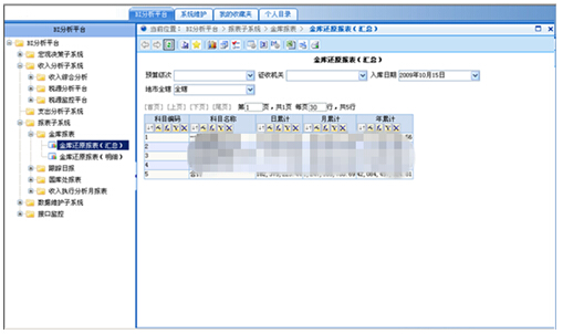 通過和人民銀行TBS系統(tǒng)的數(shù)據(jù)接口,獲取會計基礎(chǔ)數(shù)據(jù),還原為精確到角分的報表,提供分部門、分級次等的匯總和查詢的功能,降低財政的人工獲取和處理數(shù)據(jù)的工作量。