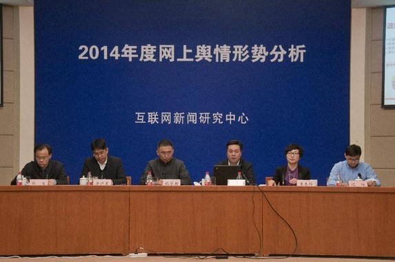 今日(25日)下午,中國(guó)互聯(lián)網(wǎng)新聞研究中心在京主辦“2014年度網(wǎng)上輿情形勢(shì)分析”發(fā)布會(huì)。中國(guó)互聯(lián)網(wǎng)新聞研究中心副主任華清、新華網(wǎng)輿情監(jiān)測(cè)分析中心主任段賽民、人民網(wǎng)輿情監(jiān)測(cè)室秘書(shū)長(zhǎng)祝華新、互聯(lián)網(wǎng)實(shí)驗(yàn)室主任方興東、清華大學(xué)新聞與傳播學(xué)院教授沈陽(yáng)和中國(guó)傳媒大學(xué)互聯(lián)網(wǎng)信息研究院院長(zhǎng)助理李未檸等專(zhuān)家受邀在發(fā)布會(huì)上分別從不同角度發(fā)布報(bào)告。來(lái)自全國(guó)主流媒體的30多位記者和部分自媒體負(fù)責(zé)人參加了此次發(fā)布會(huì)。