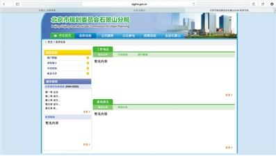 北京市規(guī)劃委員會(huì)石景山分局官網(wǎng),“政務(wù)信息”欄下三個(gè)版塊均顯示“暫無(wú)內(nèi)容”。