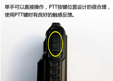 單手可以直接操作,PTT按鍵位置設計的很合理,使用PTT鍵時有良好的觸感反饋。