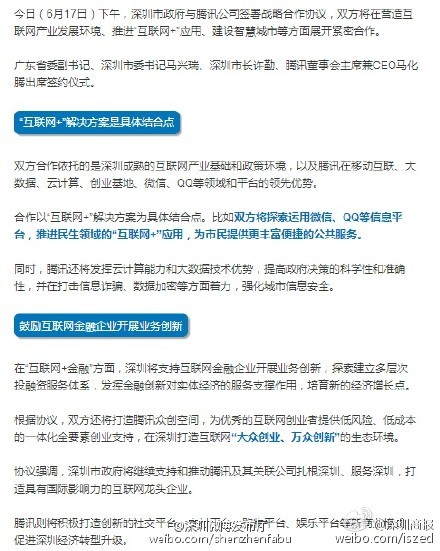 深圳政府與騰訊簽署戰(zhàn)略合作