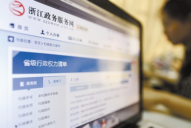 浙江省自去年11月份以來建成了省、市、縣三級聯(lián)動的政務服務網(wǎng)。這是浙江政務服務網(wǎng)上公布的省級行政權力清單。