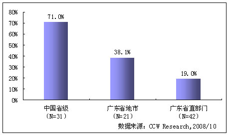 計(jì)世資訊選取我國31個(gè)省級政府網(wǎng)站以及廣東省的21個(gè)地級市和42個(gè)省直部門網(wǎng)站為研究對象。調(diào)研結(jié)果表明,三類網(wǎng)站申請公開欄目的擁有率成倍遞減,省級政府網(wǎng)站、廣東地級市政府網(wǎng)站和廣東省直部門政府網(wǎng)站申請公開欄目的擁有率分別為71.0%、38.1%和19.0%(如下圖所示),遠(yuǎn)達(dá)不到國家要求。