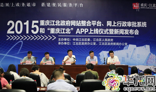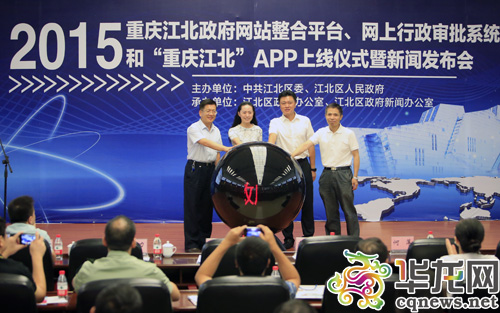 今日,2015重慶江北政府網(wǎng)站整合平臺(tái)、網(wǎng)上行政審批系統(tǒng)和“重慶江北”APP上線儀式暨新聞發(fā)布會(huì)舉行。 記者 李文科 攝