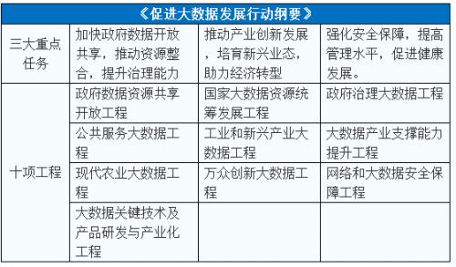 根據(jù)《綱要》,到2020年,我國將形成一批具有國際競爭力的大數(shù)據(jù)處理、分析、可視化軟件和硬件支撐平臺等產(chǎn)品;并且培育10家國際領(lǐng)先的大數(shù)據(jù)核心龍頭企業(yè),500家大數(shù)據(jù)應(yīng)用、服務(wù)和產(chǎn)品制造企業(yè)。