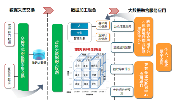 政府大數(shù)據(jù)融合作為基礎(chǔ)條件,基于政府開放、可信的數(shù)據(jù),互聯(lián)網(wǎng)公司等企業(yè)可開發(fā)更多的創(chuàng)新型應(yīng)用,為公眾提供更多量身定制的個性化服務(wù),快速提高區(qū)域企業(yè)創(chuàng)新服務(wù)能力。