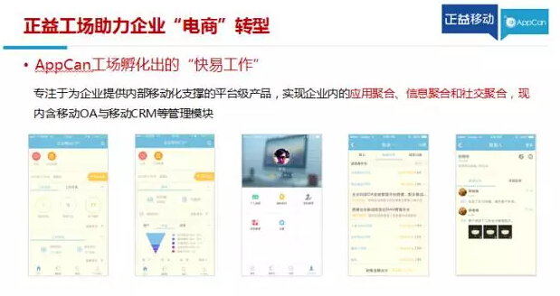 正益移動作為國內(nèi)移動平臺技術(shù)與移動創(chuàng)新服務的領(lǐng)跑者,擁有國內(nèi)知名的移動開發(fā)和技術(shù)支撐平臺—AppCan,以及移動互聯(lián)網(wǎng)應用創(chuàng)新創(chuàng)業(yè)平臺—正益工場,分別從技術(shù)和生態(tài)兩個層面支撐企業(yè)的“電商”轉(zhuǎn)型。