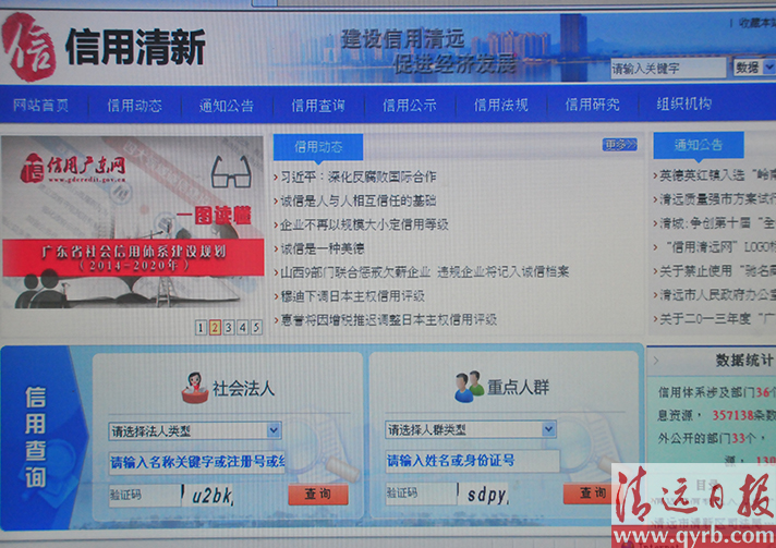 “信用清新網(wǎng)”已發(fā)布信用體系涉及部門(mén)38個(gè),226類(lèi)信息資源。圖為網(wǎng)站截圖。